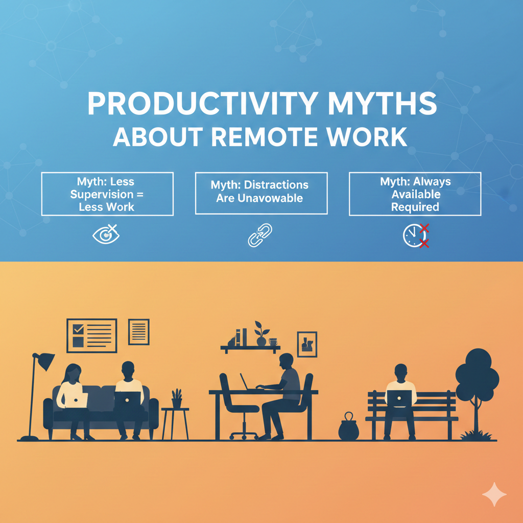 Remote work productivity Myths is often judged by outdated assumptions rather than real outcomes. The biggest myths about remote work focus on visibility, hours, and control—yet productivity depends far more on clarity, systems, and energy management.
